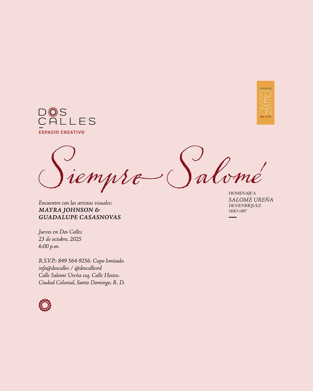 • R.S.V.P.: 849 564-9256. Cupo limitado.