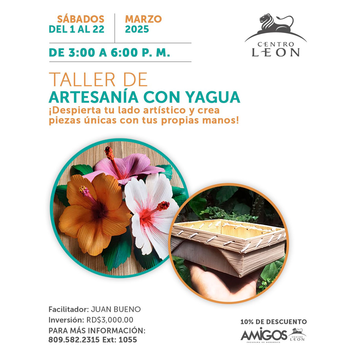 • 10% de descuento para miembros de Amigos Centro León.