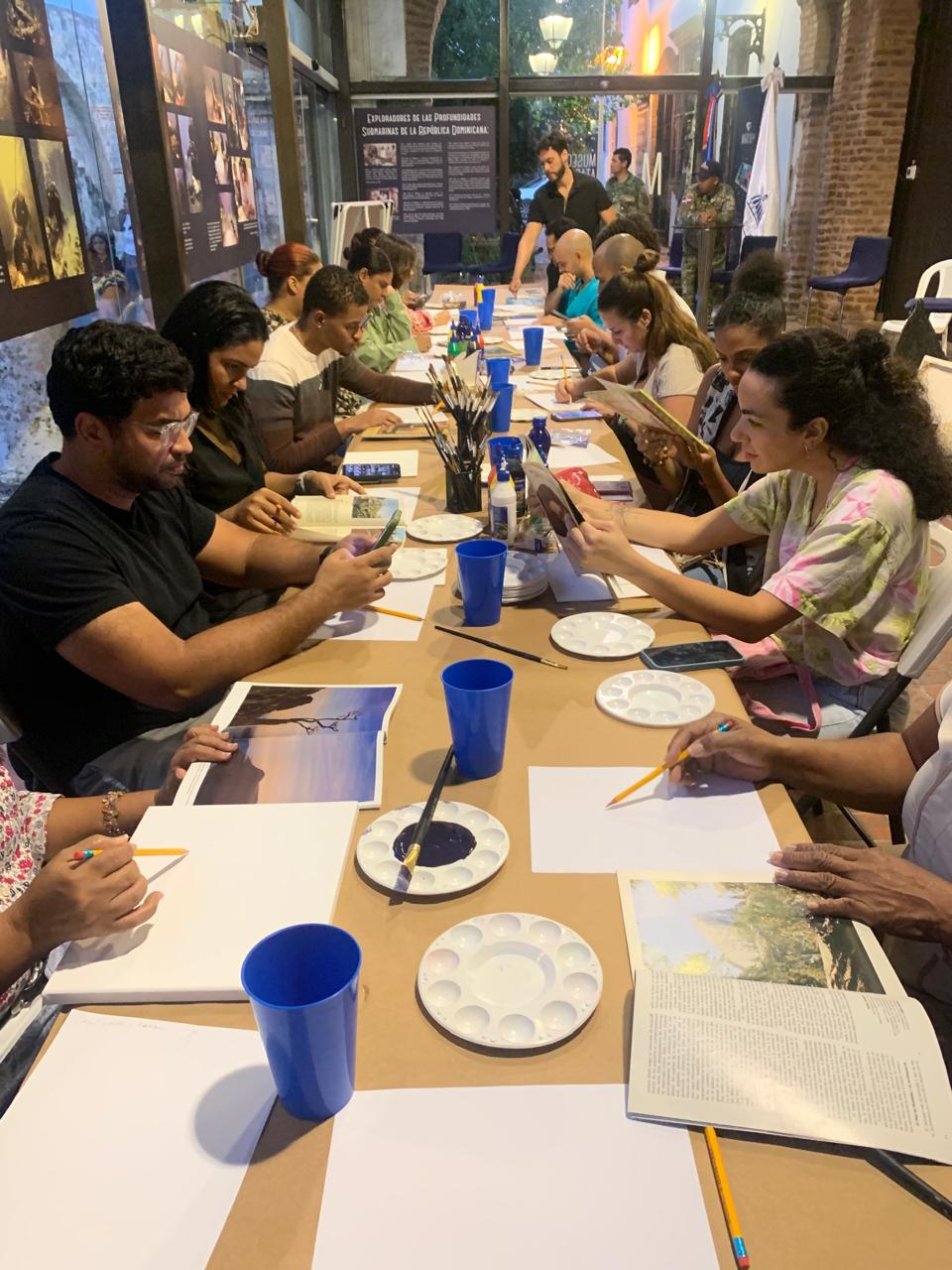 Entre paisajes terrestres y marinos, los asistentes compartieron una experiencia que vinculó creación artística y memoria histórica, en un espacio dedicado a preservar y difundir el patrimonio marítimo de la Ciudad Colonial.