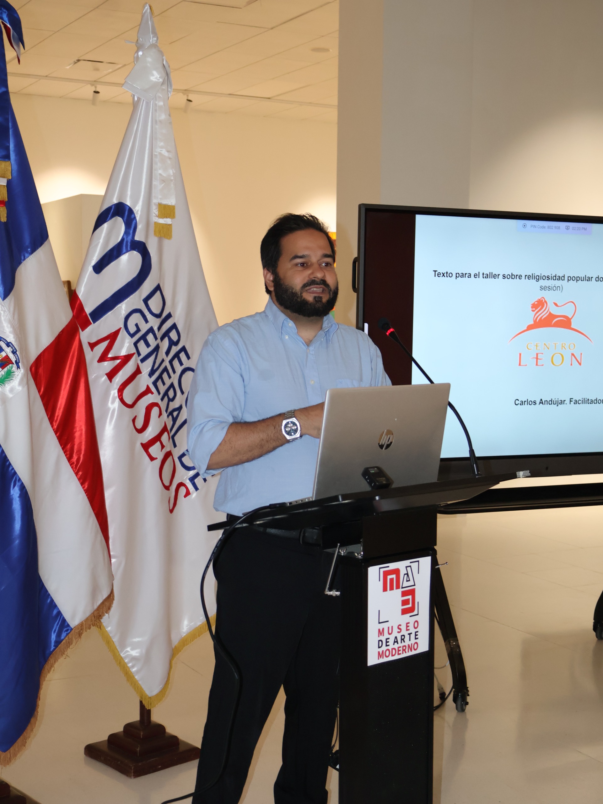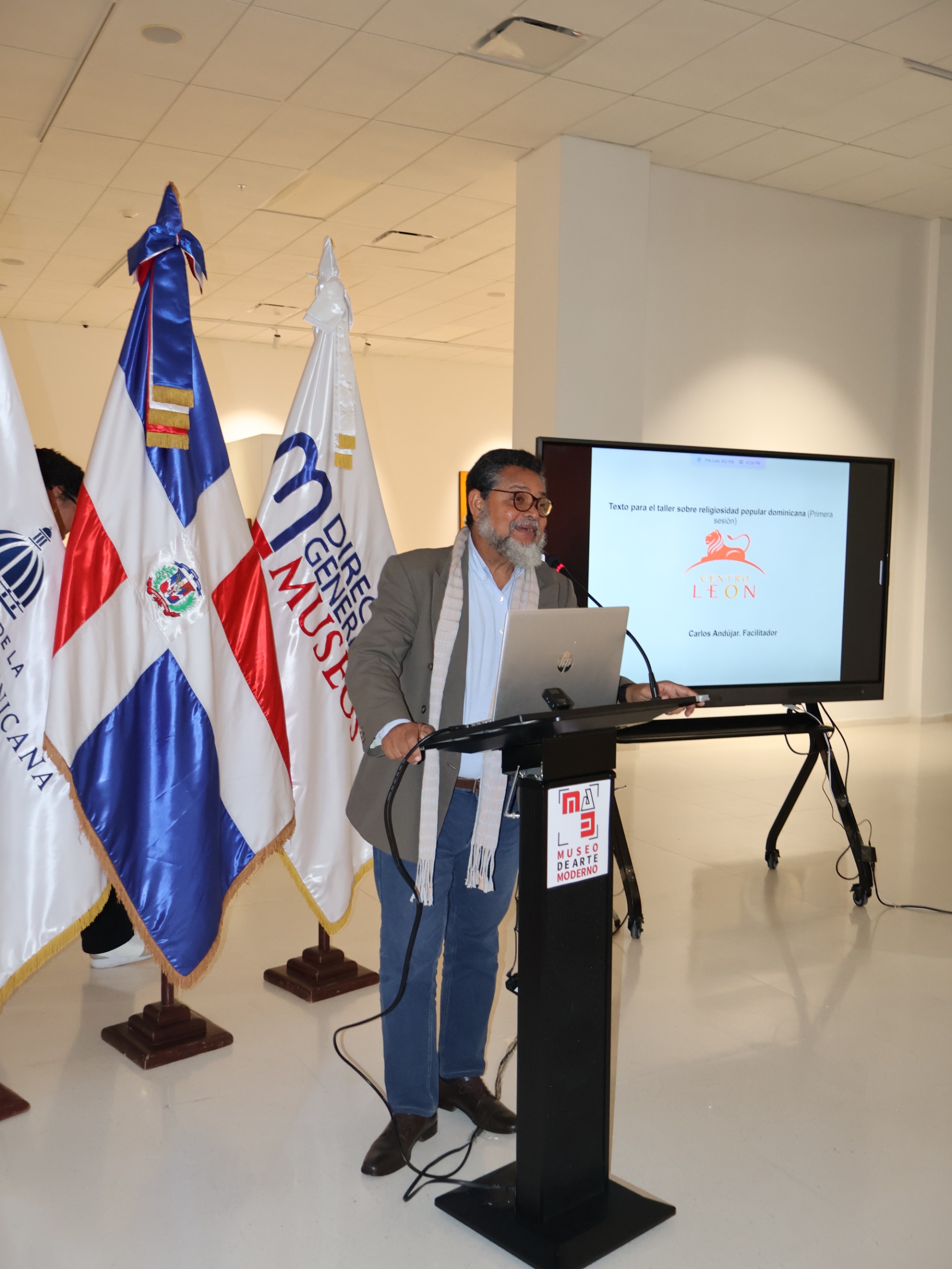 El lunes 2 de marzo, el Ministerio de Cultura, la Dirección General de Museos, el Museo de Arte Moderno y la Facultad Latinoamericana de Ciencias Sociales (FLACSO) impartieron el taller sobre religiosidad popular dominicana, a cargo del director general de Museos, Carlos Andújar.
